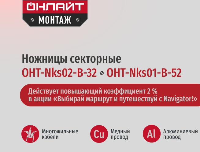 Секторные ножницы ОНЛАЙТ Монтаж OHT-Nks02-B-32 с храповым механизмом предназначены для резки медных и алюминиевых проводов и кабелей: неармированных и легкоармированных.